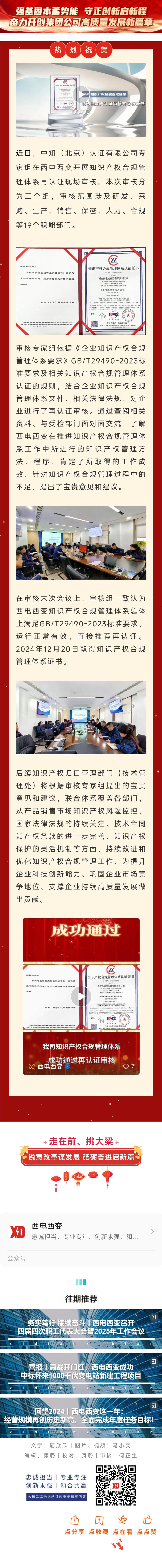 創新驅動發展 知識產權護航丨西電西變知識產權合規管理體系成功通過再認證審核并取得證書