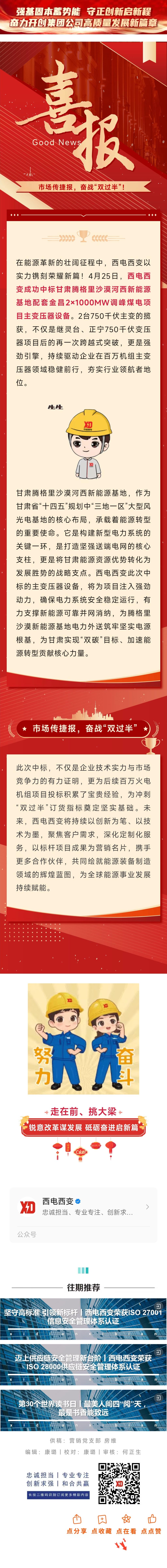 喜報丨西電西變成功中標甘肅騰格里沙漠河西新能源基地配套金昌2×1000MW調峰煤電項目